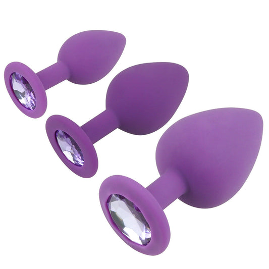 Purple Silicone Butt Plug Kit With Diamond