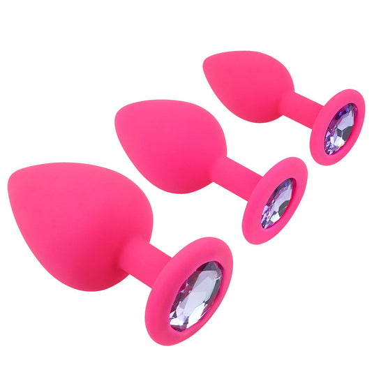 Pink Silicone Butt Plug Kit With Diamond