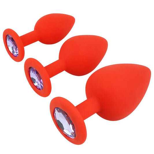 Red Silicone Butt Plug Kit With Diamond